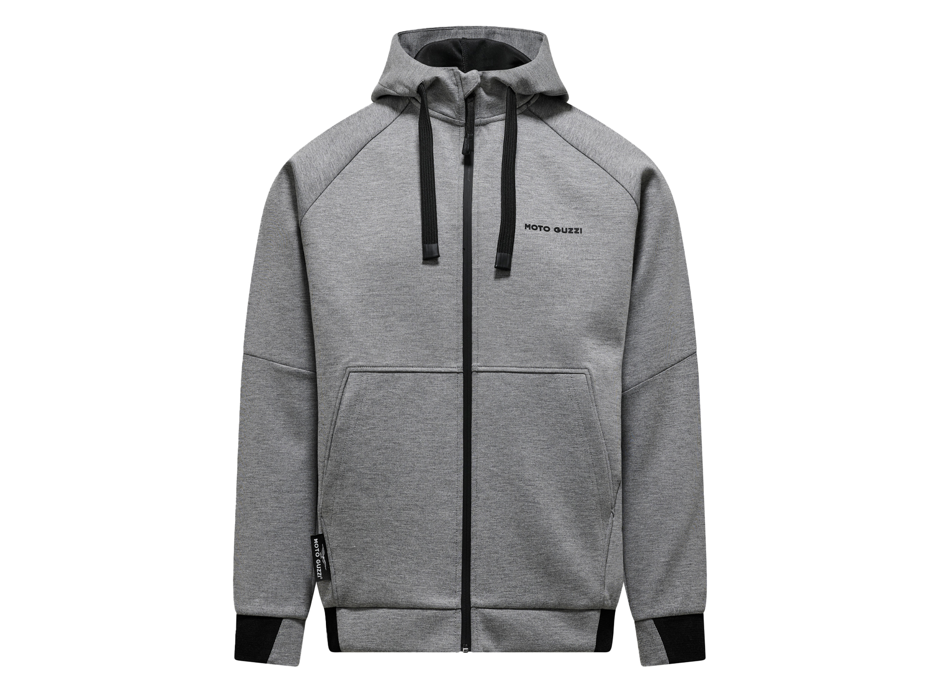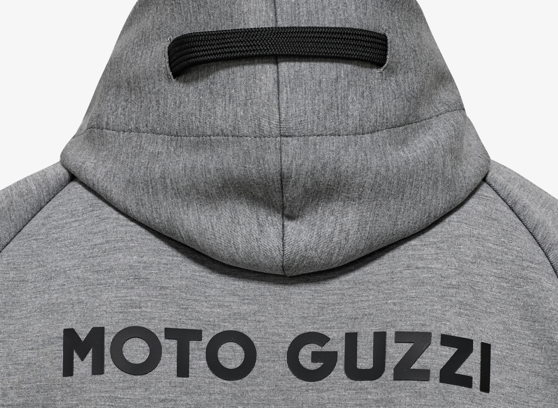 Sweatshirt aus Scuba-Stoff mit gummiertem MOTO GUZZI-Druck auf Brust und Rücken. Mit verstellbarer Kapuze, durchgehendem Reißverschluss und Kängurutaschen. Raglanärmel, eine sportliche Neuinterpretation eines Klassikers der Herrenbekleidung. Das seitlich aufgenähte MOTO GUZZI Logo sorgt für einen unverwechselbaren Touch, während die kontrastierenden doppelten Stoffbündchen an Ärmeln und Saum für Stil und Komfortsorgen.
