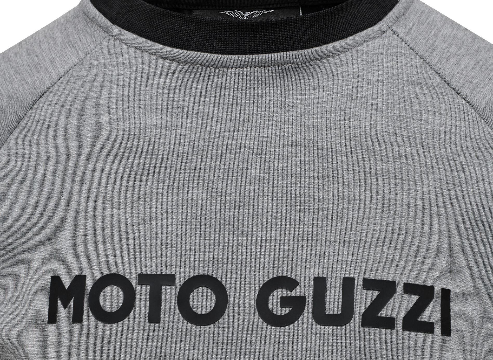 Sweatshirt aus Scuba-Material mit markantem gummiertem Druck auf Brust und Rücken. Das seitlich aufgenähte, gewebte MOTO GUZZI Logo setzt einen besonderen Akzent. Rundhalsausschnitt kontrastierender Rippoptik. Raglanärmel, kontrastierenden Bündchen aus doppeltem Stoff und Saum sorgen für Stil und Komfort und machen es zu einem idealen Kleidungsstück für Markenliebhaber.