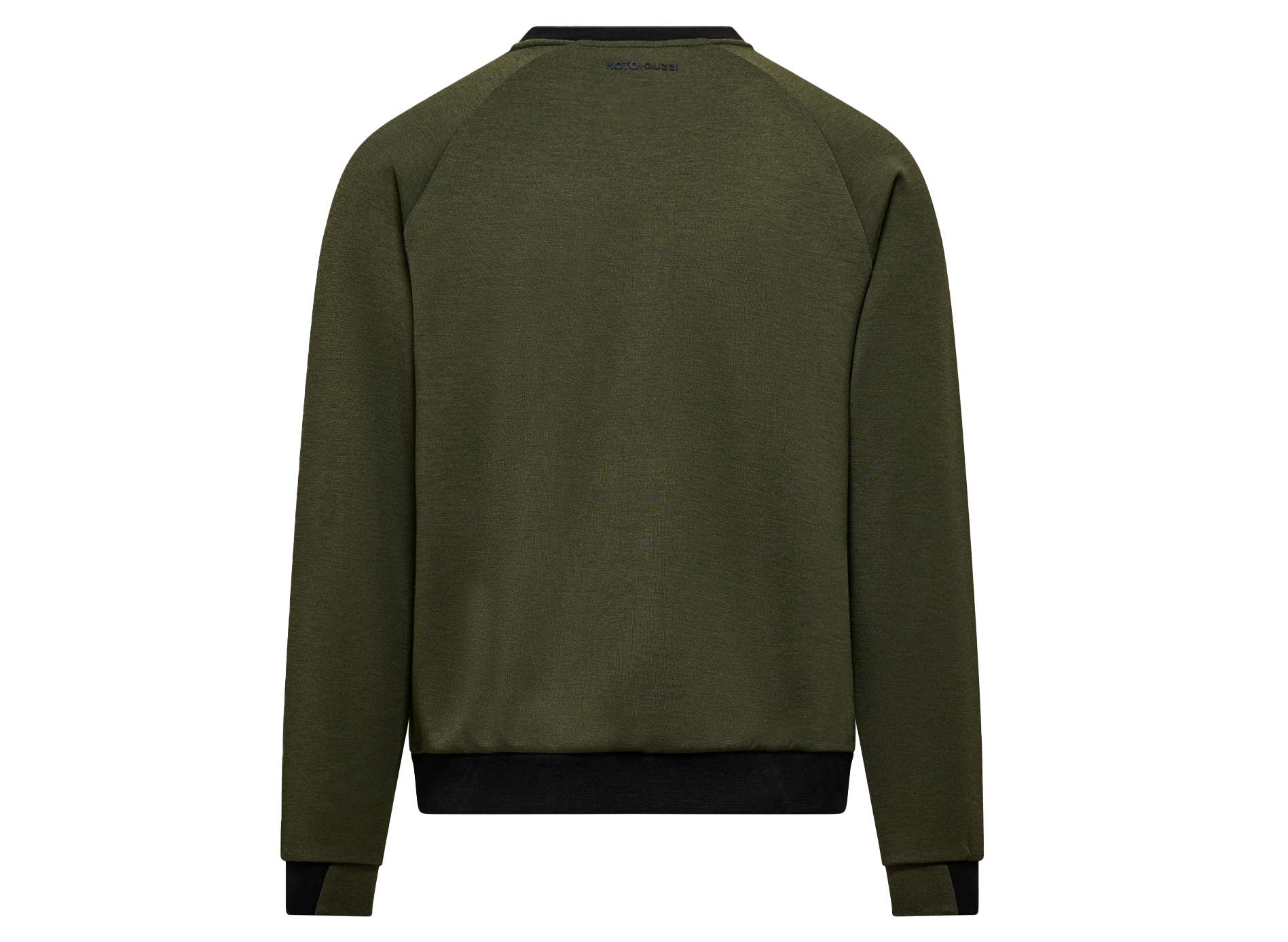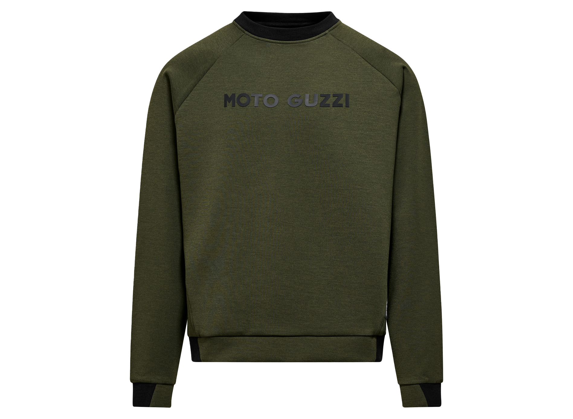 Sweatshirt aus Scuba-Material mit markantem gummiertem Druck auf Brust und Rücken. Das seitlich aufgenähte, gewebte MOTO GUZZI Logo setzt einen besonderen Akzent. Rundhalsausschnitt kontrastierender Rippoptik. Raglanärmel, kontrastierenden Bündchen aus doppeltem Stoff und Saum sorgen für Stil und Komfort und machen es zu einem idealen Kleidungsstück für Markenliebhaber.