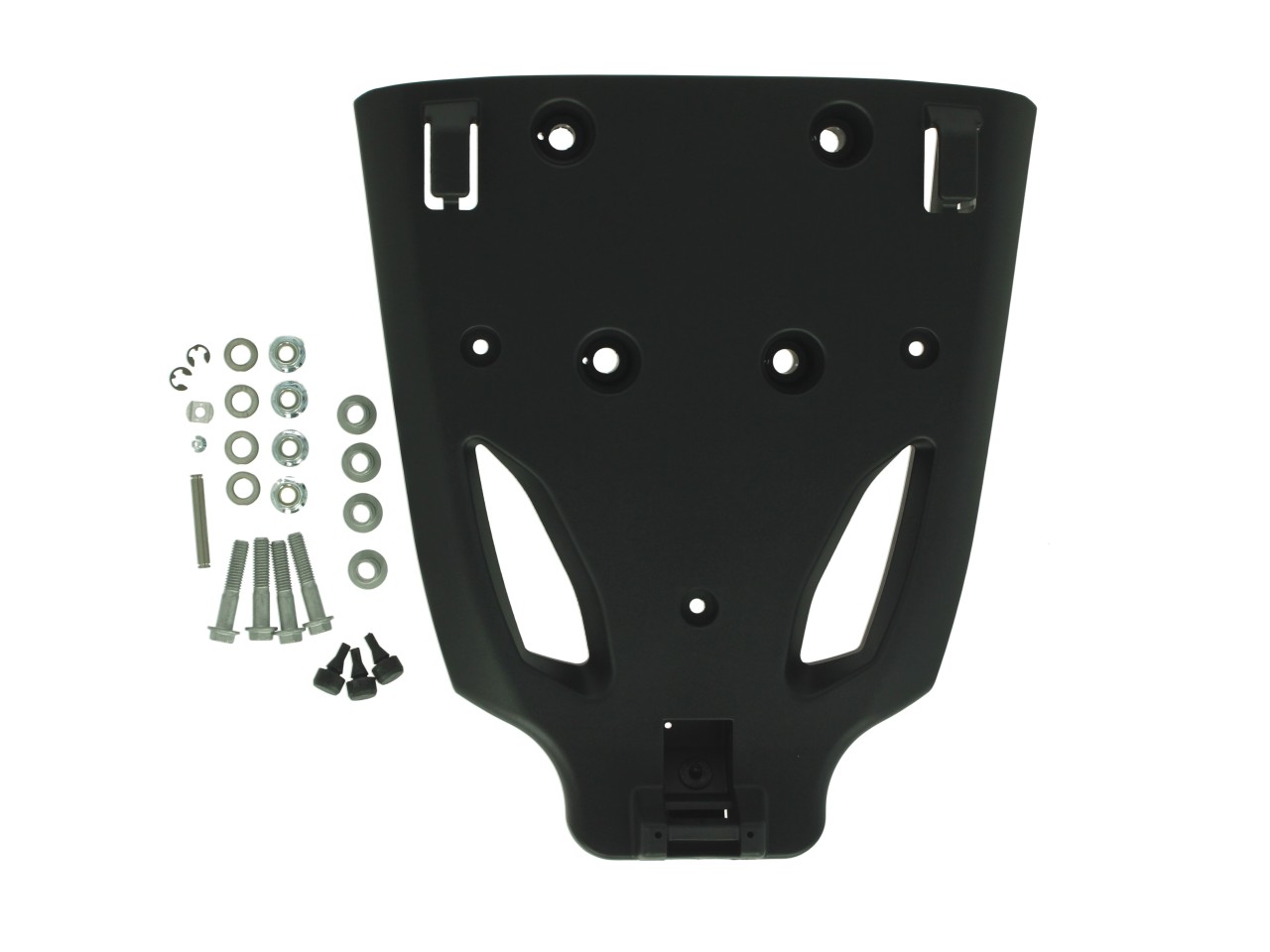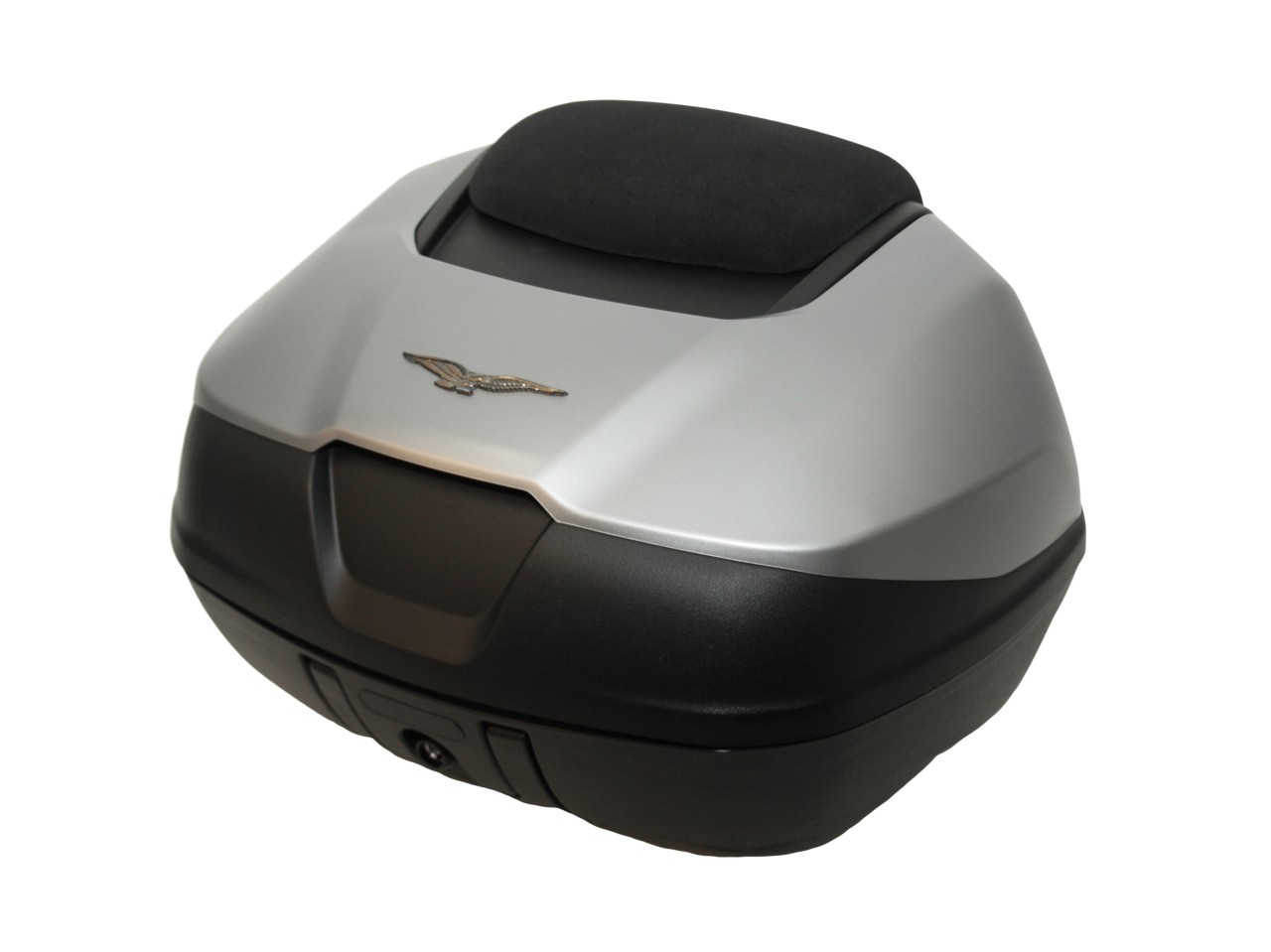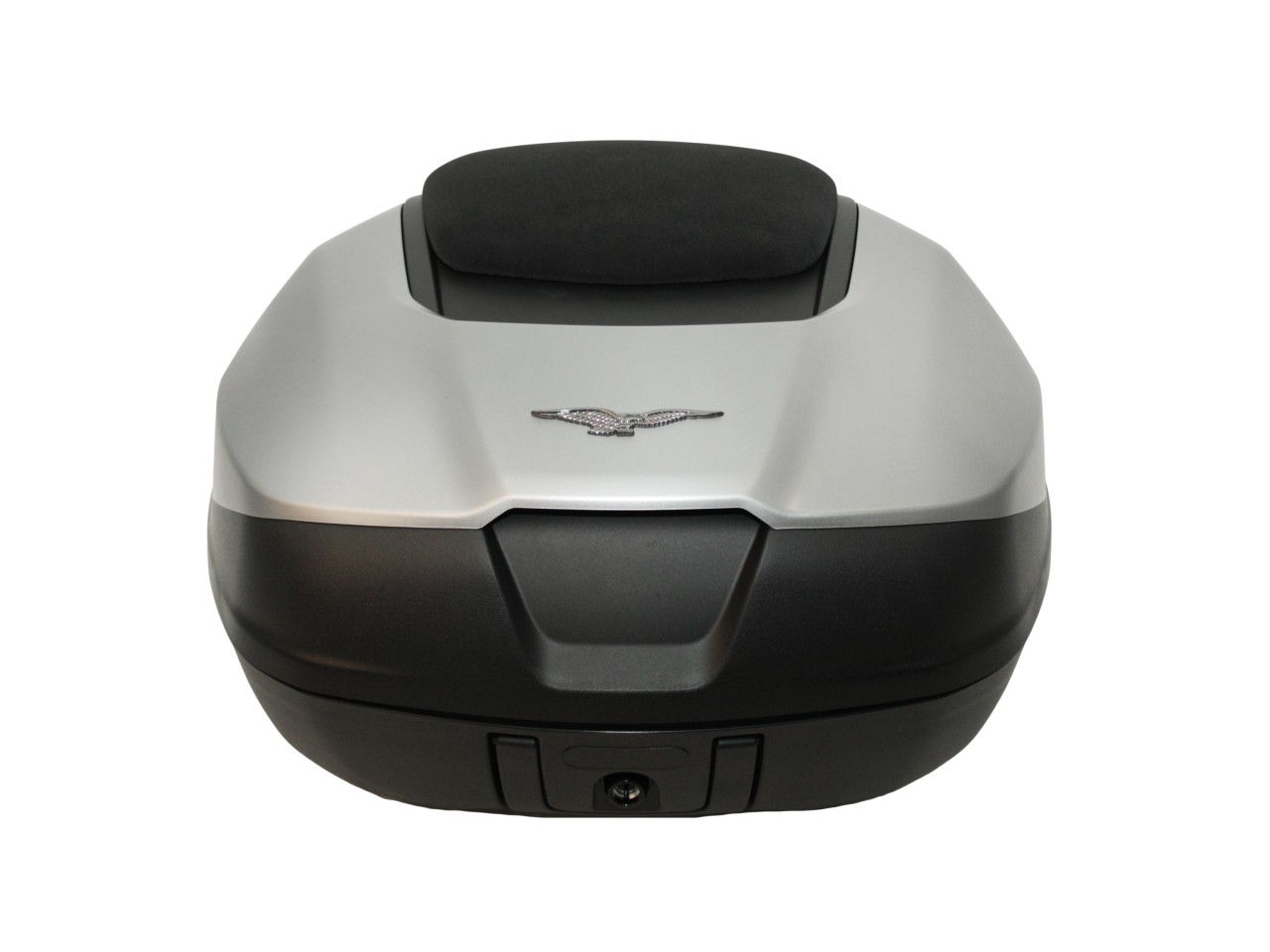 Topcase mit 52 l Fassungsvermögen für lange Fahrten, das zwei Integralhelme aufnehmen kann. Es ist optisch in den Stil der Stelvio integriert und verfügt über eine spezielle Abdeckung und ein bequemes Rückenpolster aus demselben Material wie der Sitz. Diese Topbox kann mit separaten Schlössern ausgestattet werden, um ein System mit dem gleichen Schlüssel wie für das Fahrzeug zu erhalten. Außerdem verfügt er über einklappbare Griffe für einen bequemen Transport.